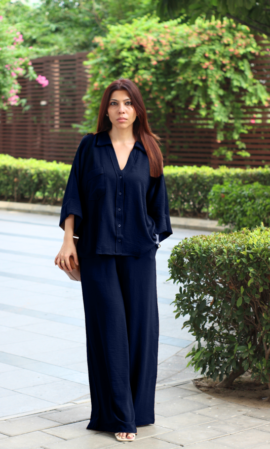 Navy Sleeved Waist Coat and Flared Pants Co-ord