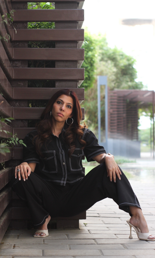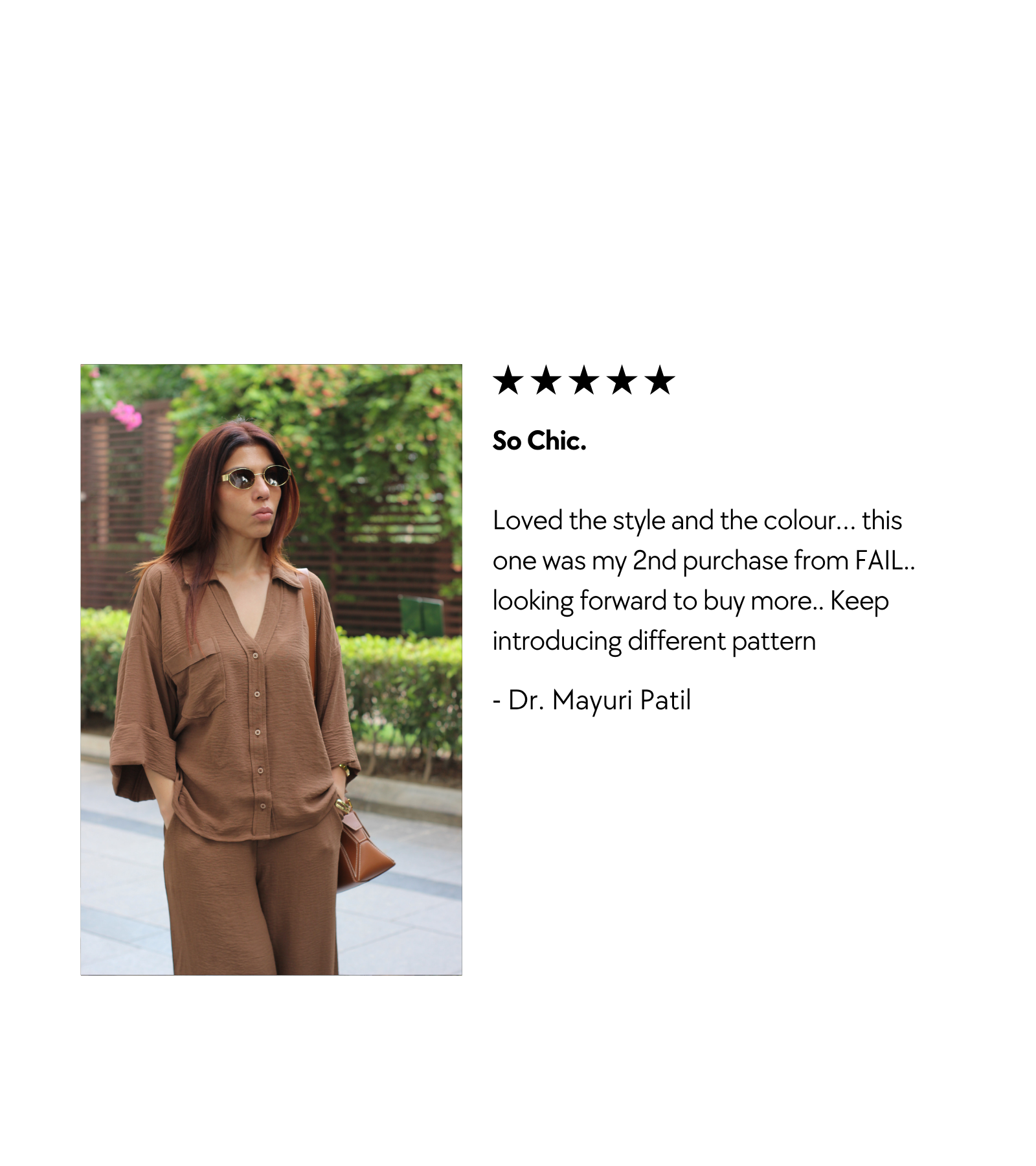 Chocolate Metallic Buttoned Shirt and Pants Co-ord
