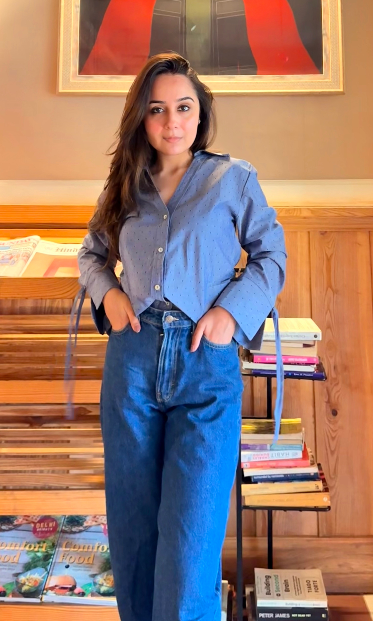 Soft, lived-in, and secretly chic — This shirt is made from a textured dobby cotton that never clings and never needs ironing. It features a relaxed V-neckline, full sleeves with tie-cuff details, and an easy, slightly oversized fit that moves with you. The subtle grid texture adds dimension, while the Haze Blue hue keeps things cool and versatile. Tuck it in, half-tuck it, or wear it loose — it’s a wardrobe shapeshifter that pairs just as well with denims as with tailored bottoms.
