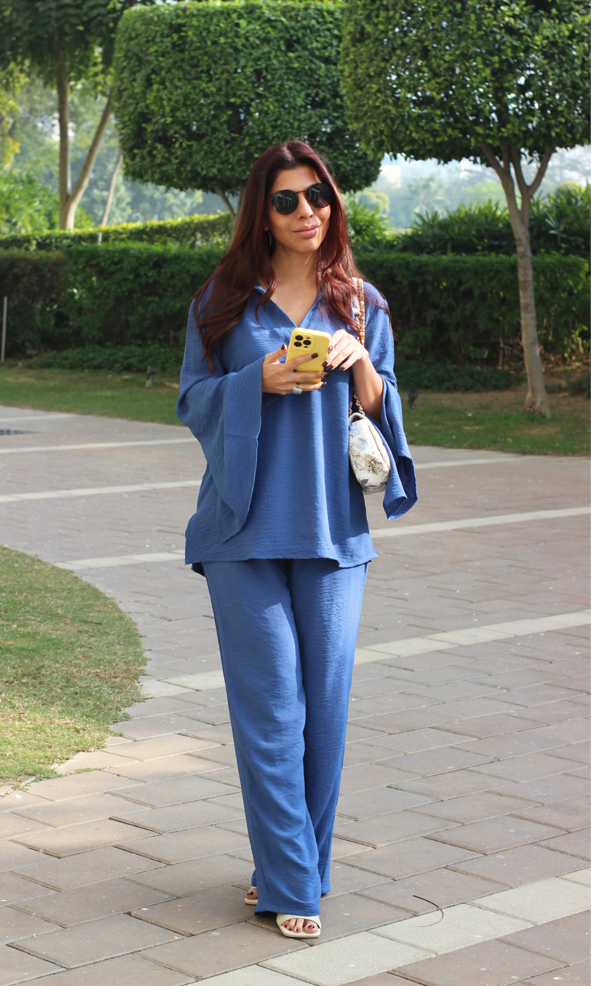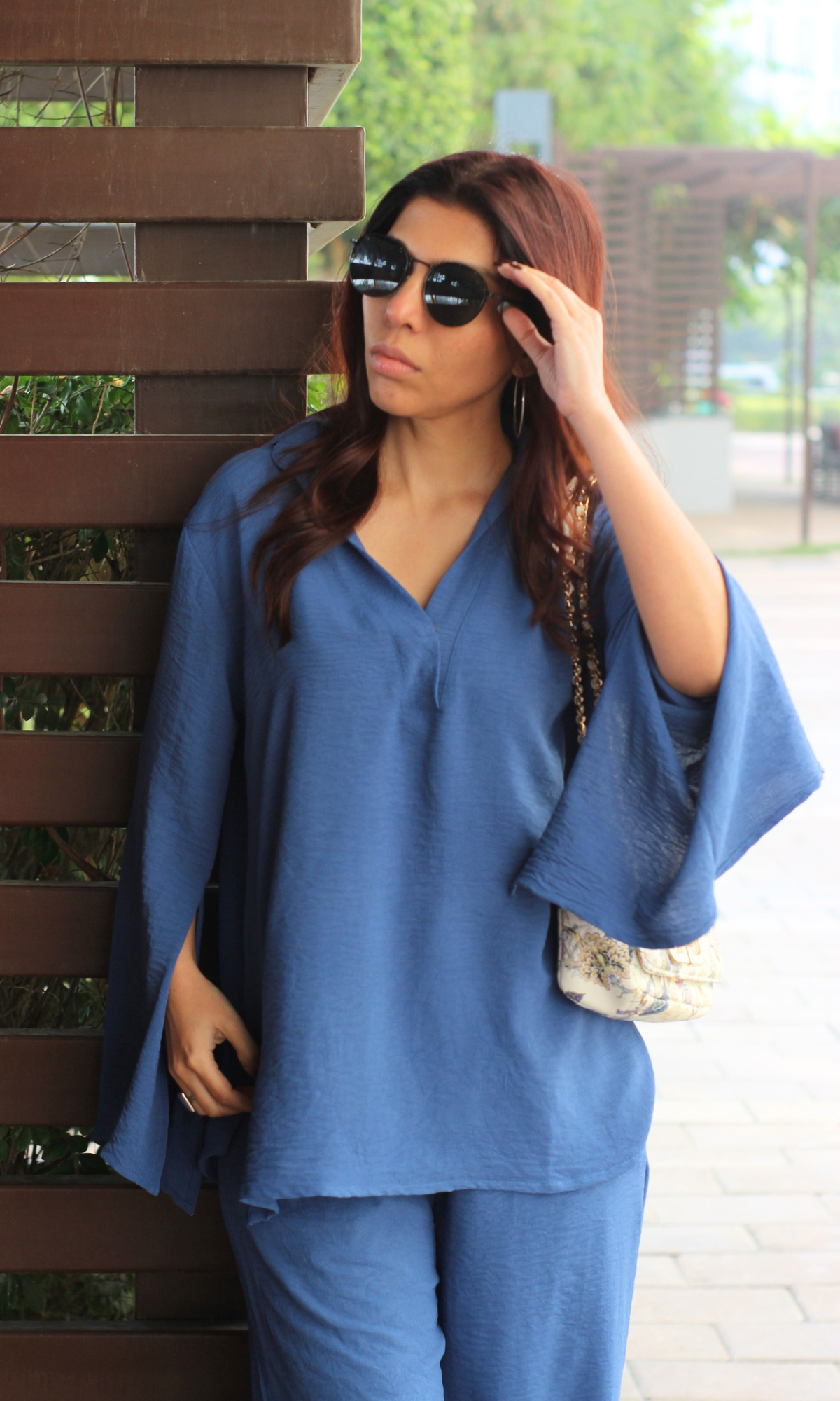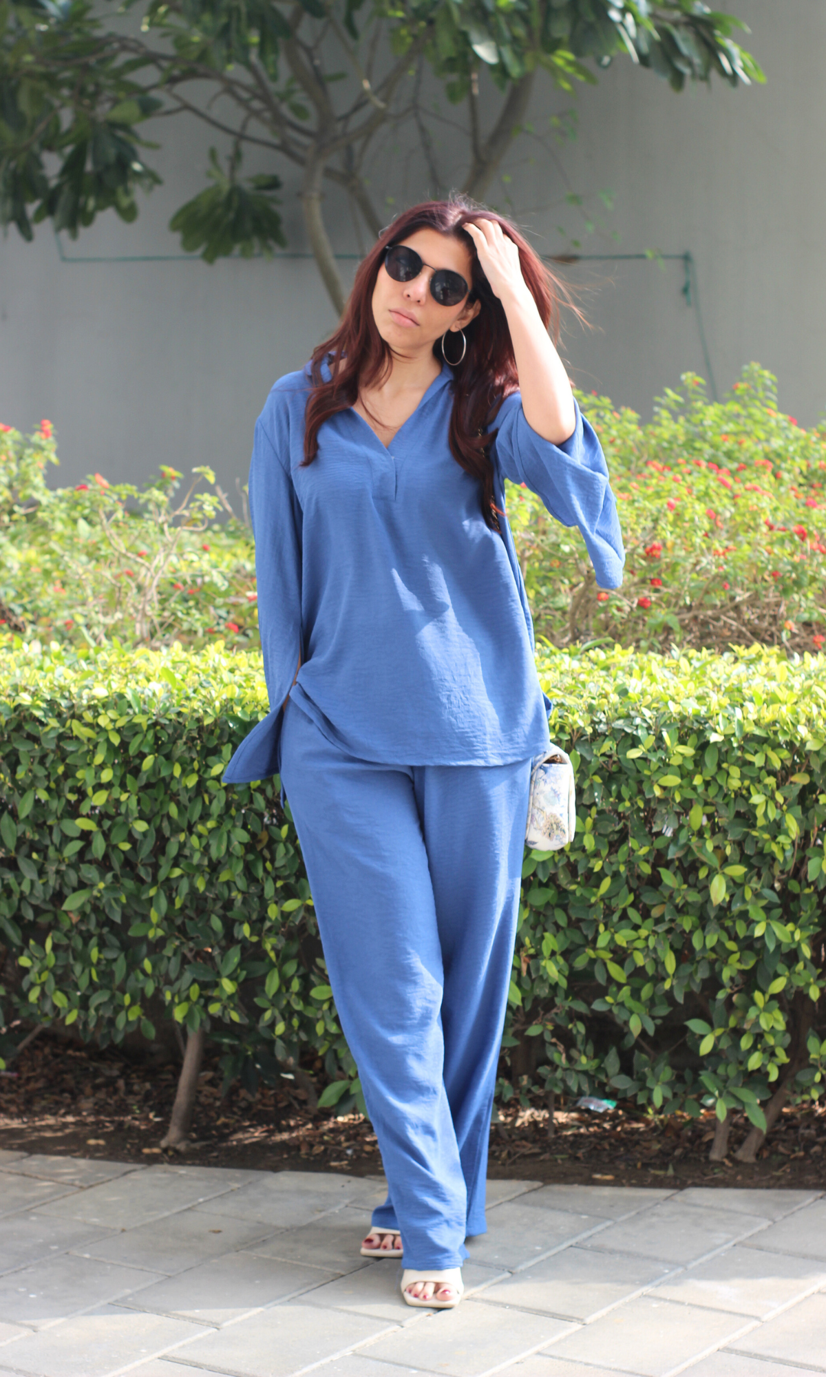 Recommended Fit: To achieve a similar fit to the model, we suggest going for your regular size. The shirt is a loose fit style. Pants have elastic at the back.