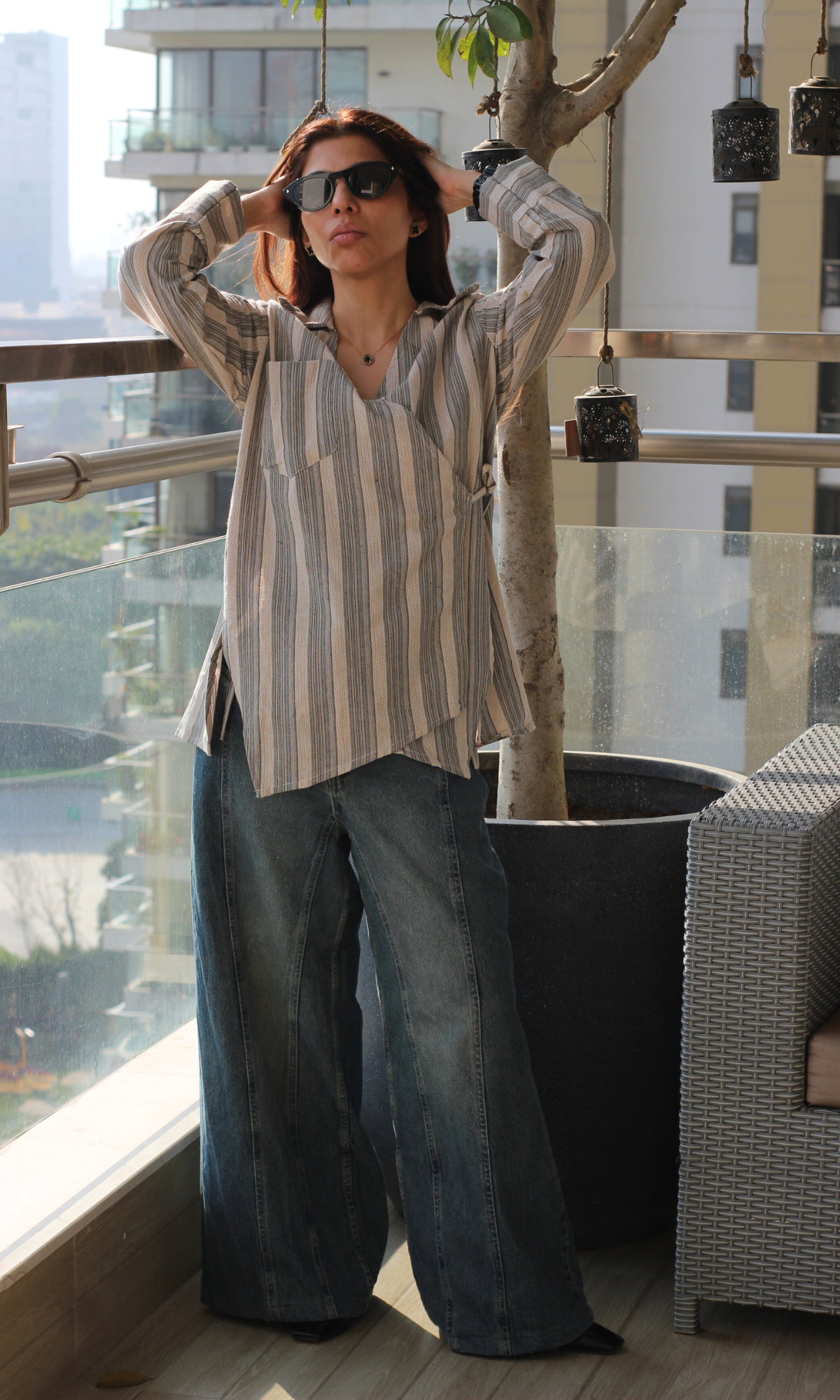 An effortless blend of polish and ease — this wrap top is made for days when you want to look put-together without trying too hard. The soft, breathable fabric drapes beautifully, while the asymmetrical wrap top with tie detailing adds a hint of structure.