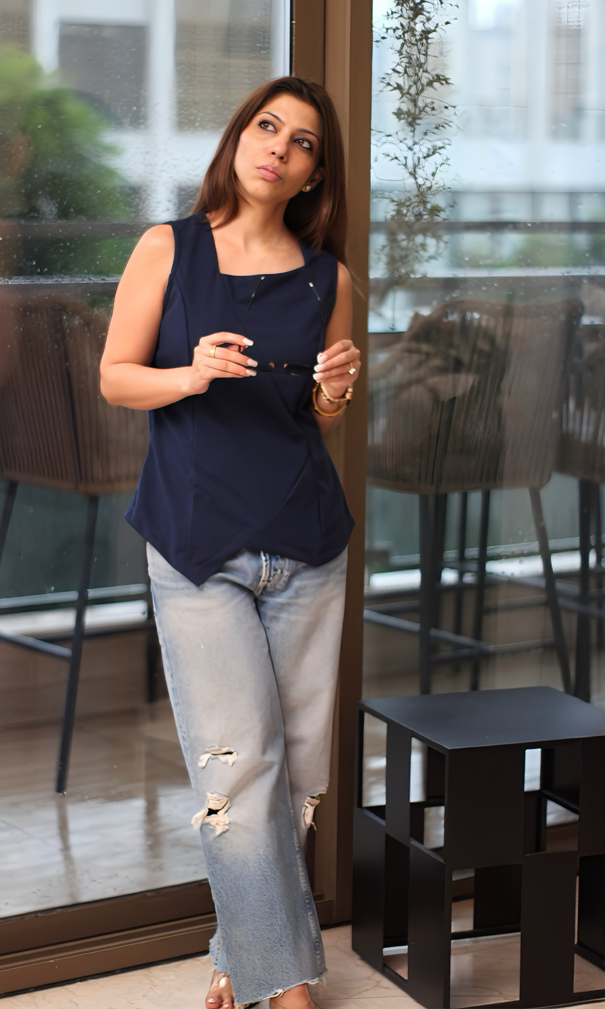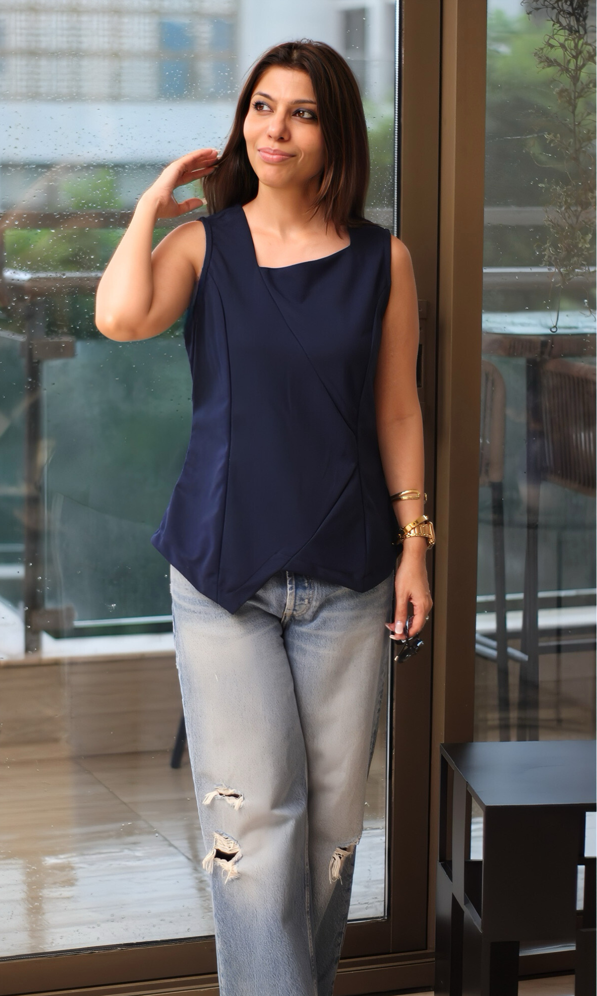 Sharp, sleek, and full of character — the Midnight Angular Top turns minimalism into an art form. Designed with a statement asymmetric neckline and soft, angular folds that contour the body, it’s the ultimate piece for when you want simple to look striking. Pair it with tailored pants for work or denim for an off-duty edge.