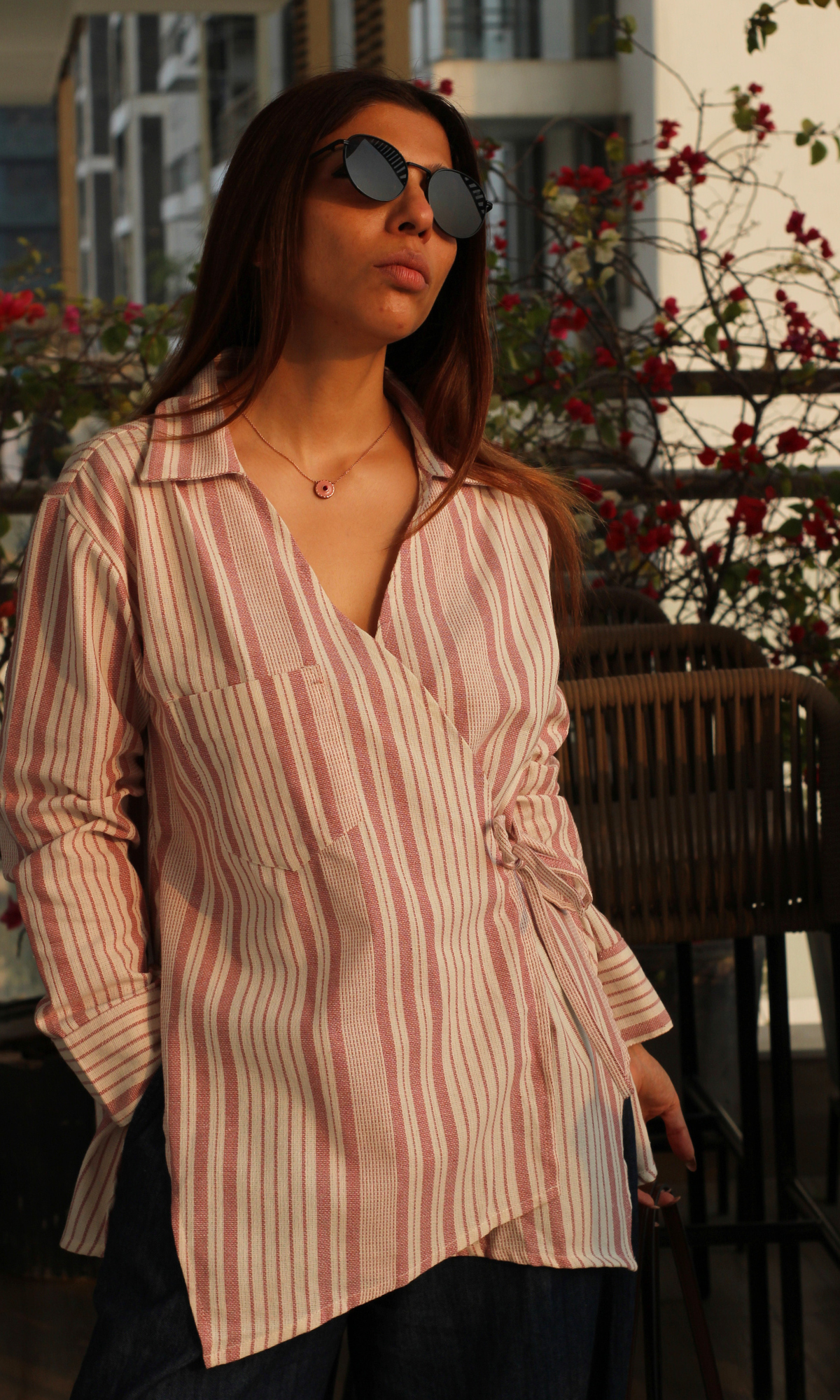 An effortless blend of polish and ease — this wrap top is made for days when you want to look put-together without trying too hard. The soft, breathable fabric drapes beautifully, while the asymmetrical wrap top with tie detailing adds a hint of structure.