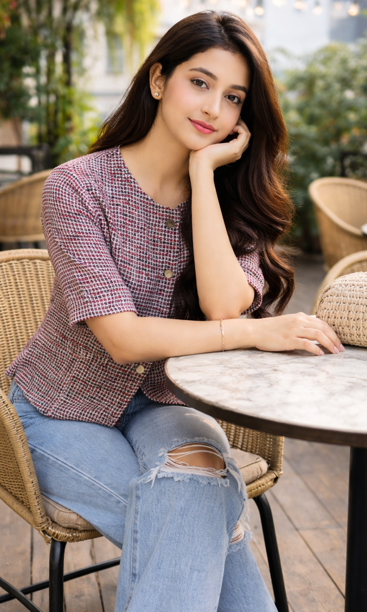 Your new “looks-put-together” hack. This round-neck tweed waistcoat comes with structured seams, clean lines and luxe buttons—making it an instant upgrade to your basics, denims and all your weekday fits.
