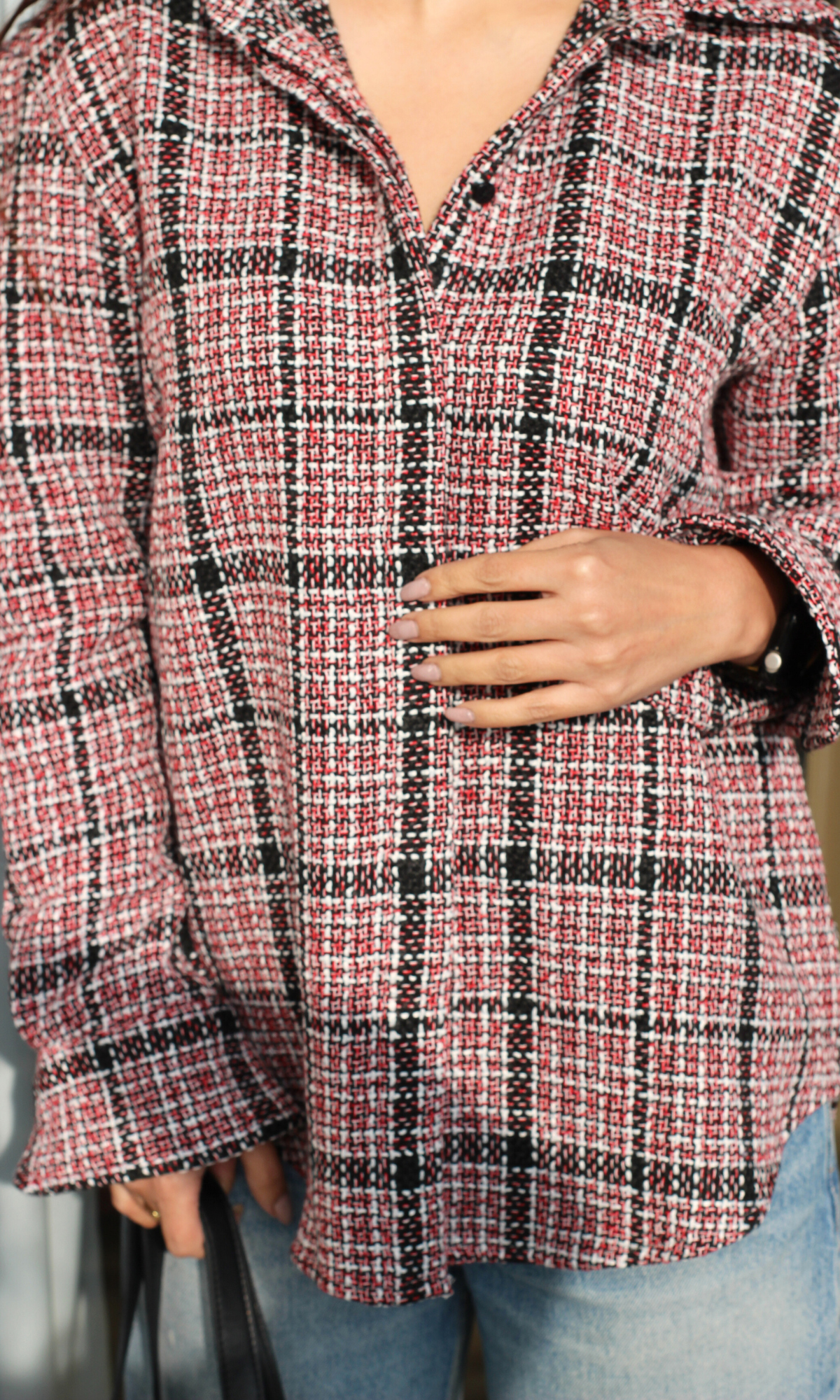 Red Check Tweed Overshirt