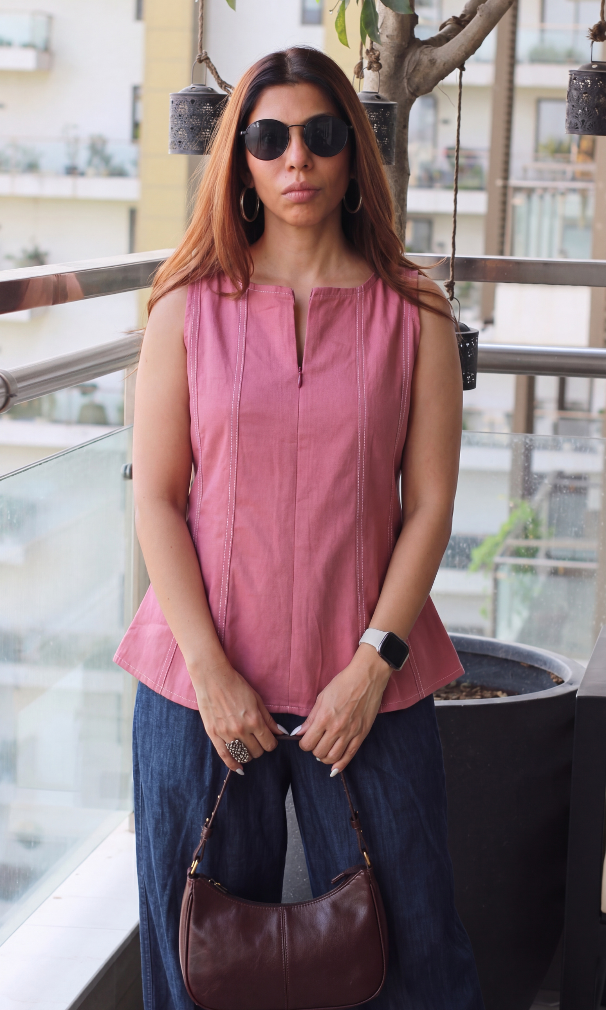 Soft, structured, and effortlessly stylish — this salmon denim top is designed to add a fresh pop of color to your everyday wardrobe. Crafted in breathable cotton denim, it features a flattering flared silhouette with subtle panel detailing that enhances shape while keeping the look minimal and refined. Perfect for both work and casual outings, it blends comfort with a polished finish.