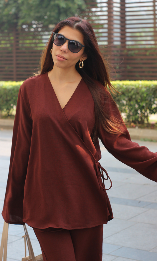 Rust Slit Sleeves Top and Pants Co-ord