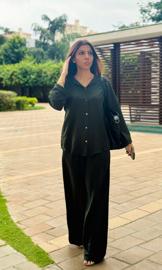Olive Metallic Buttoned Shirt and Pants Co-ord