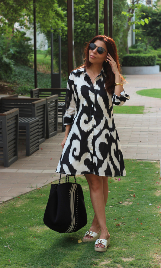 Monochrome Brushstroke Shirt Dress