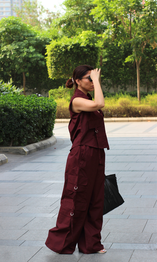 Wine Poplin Shirt and Cargo Pants