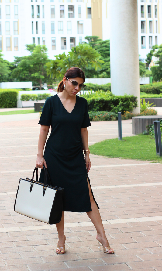 Deep Teal Noir Cinched Waist Midi Dress