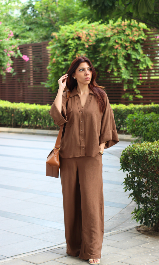 Soft Mocha Loose Shirt and Pants Co-ord